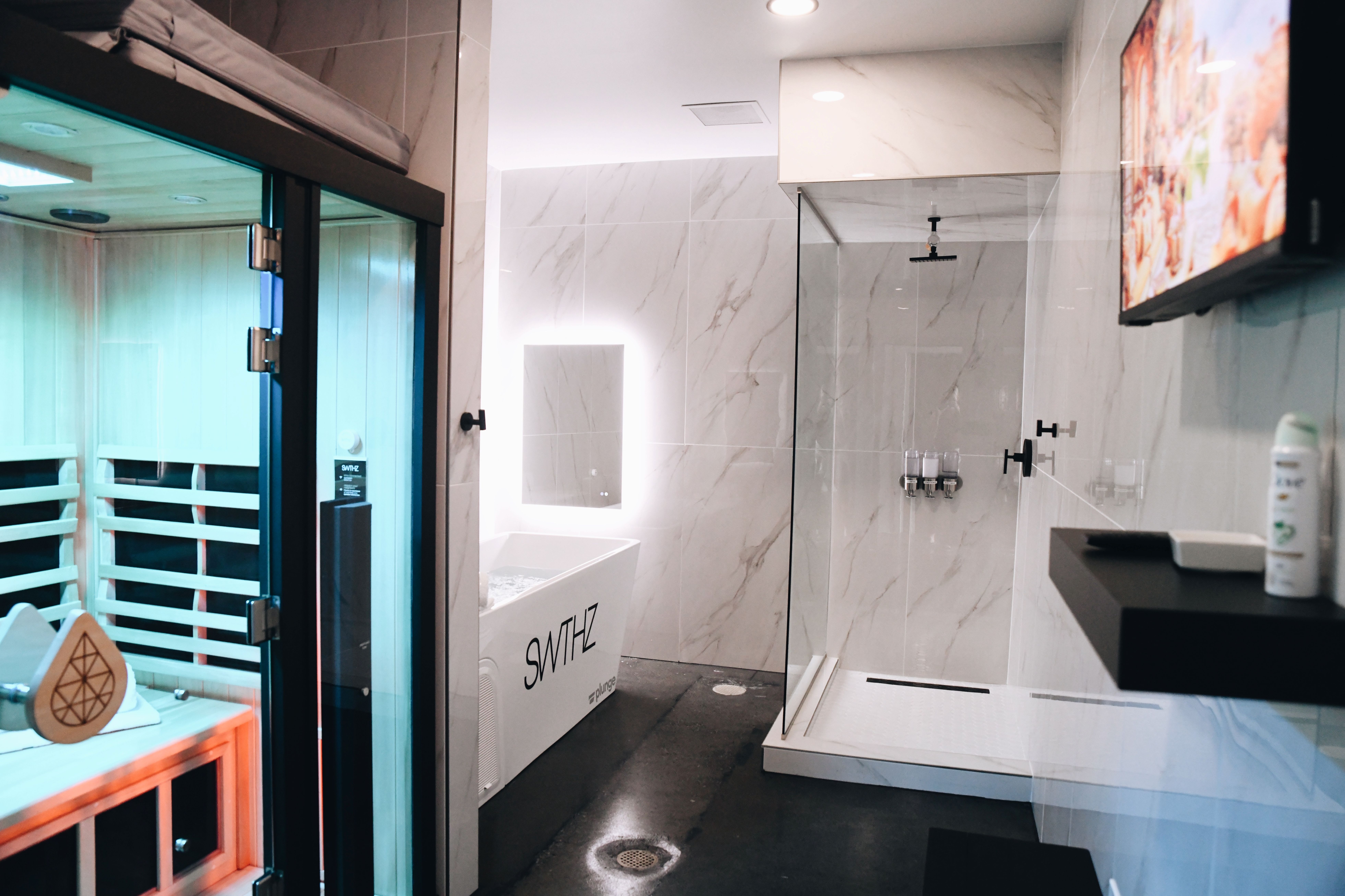 Tenant finish buildout for a 2,349 SF high-end contrast therapy studio featuring nine suites with saunas, cold plunges and showers.