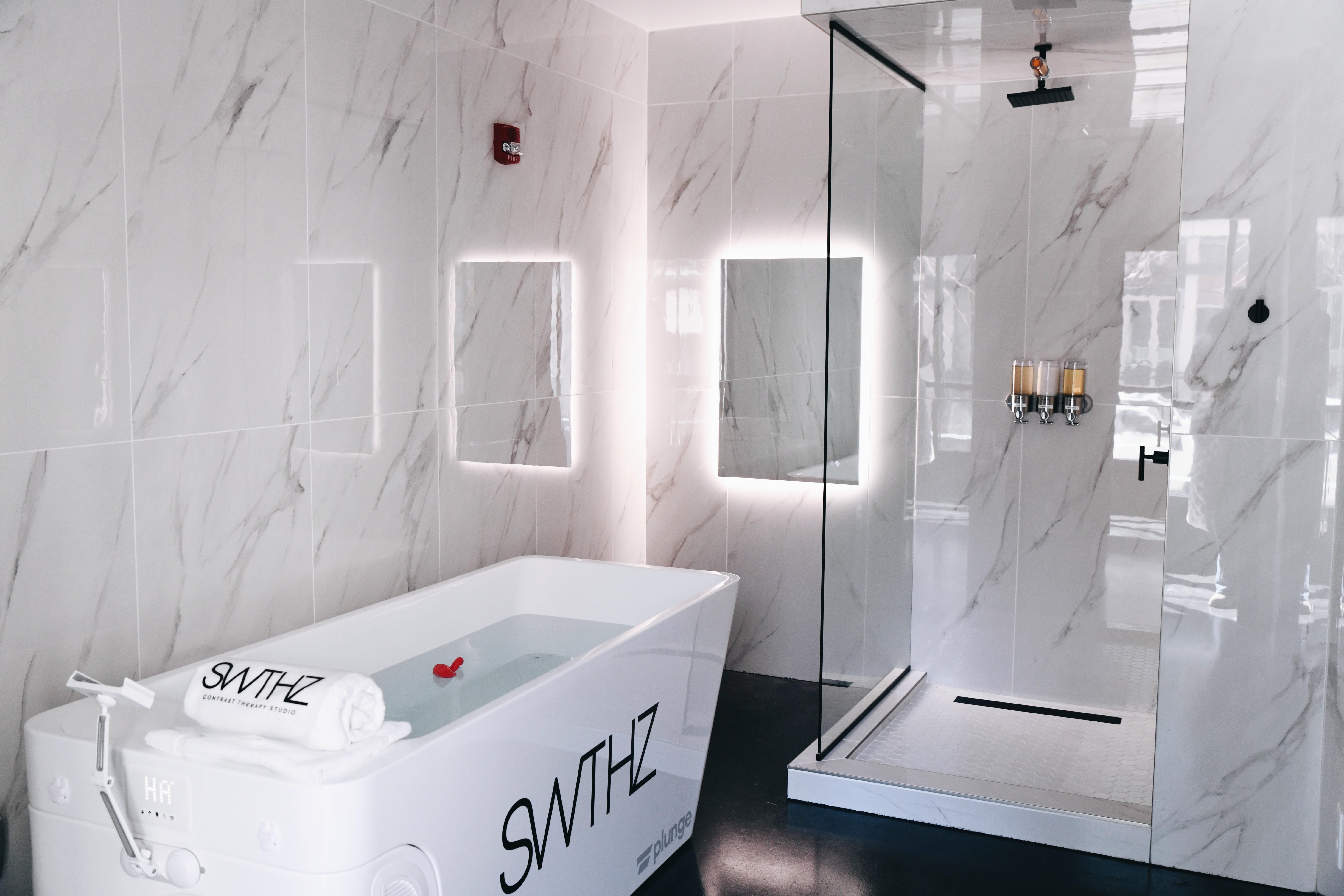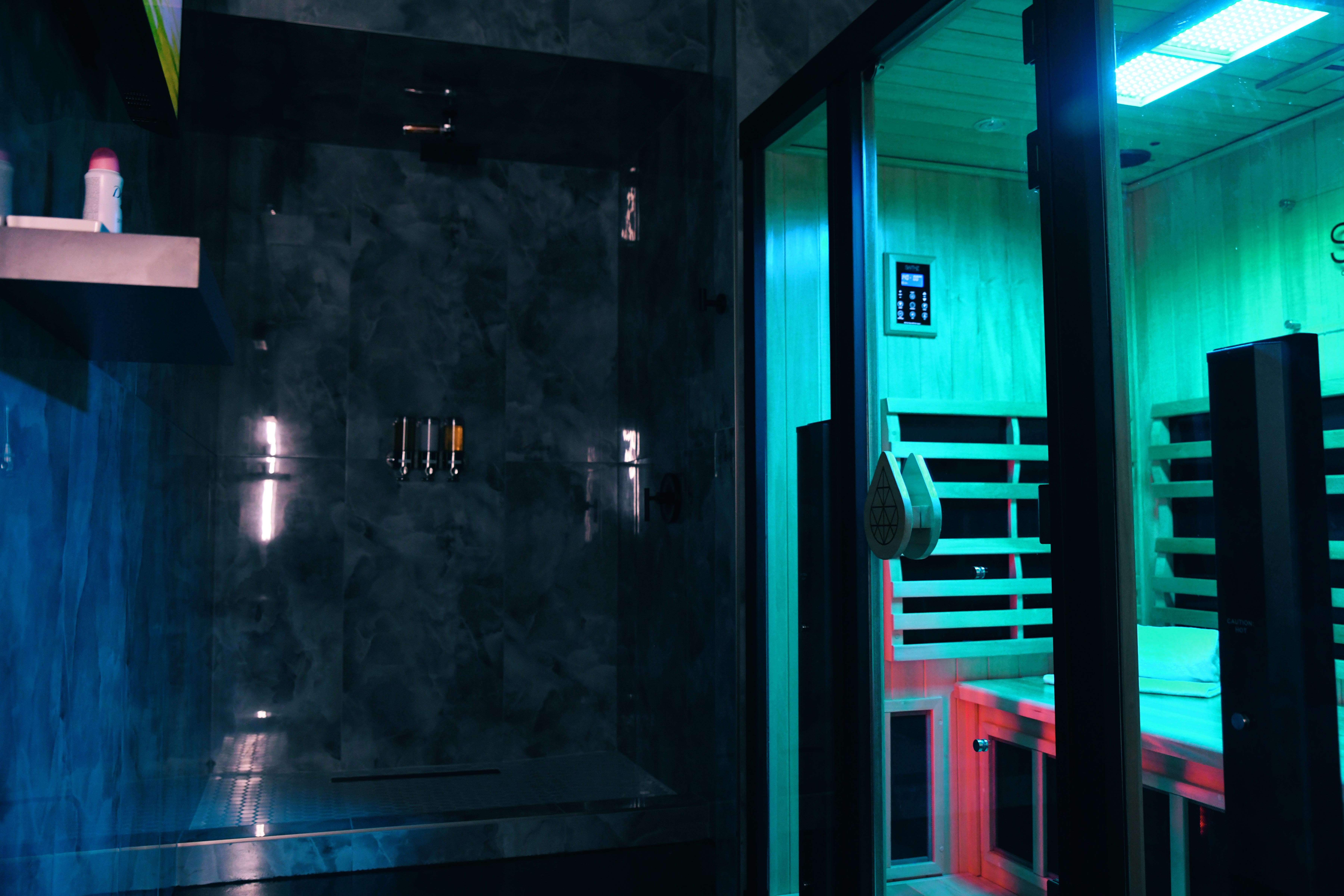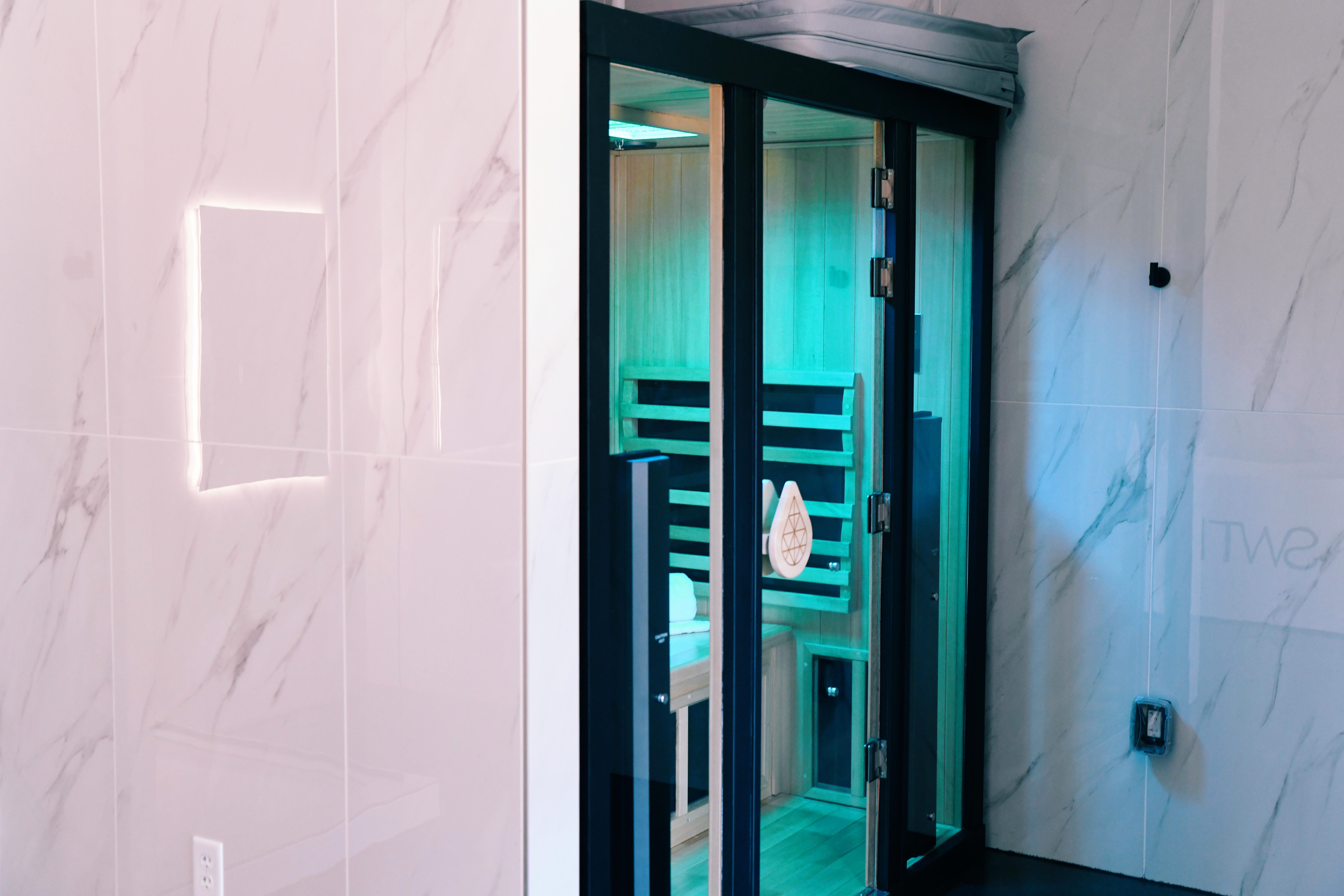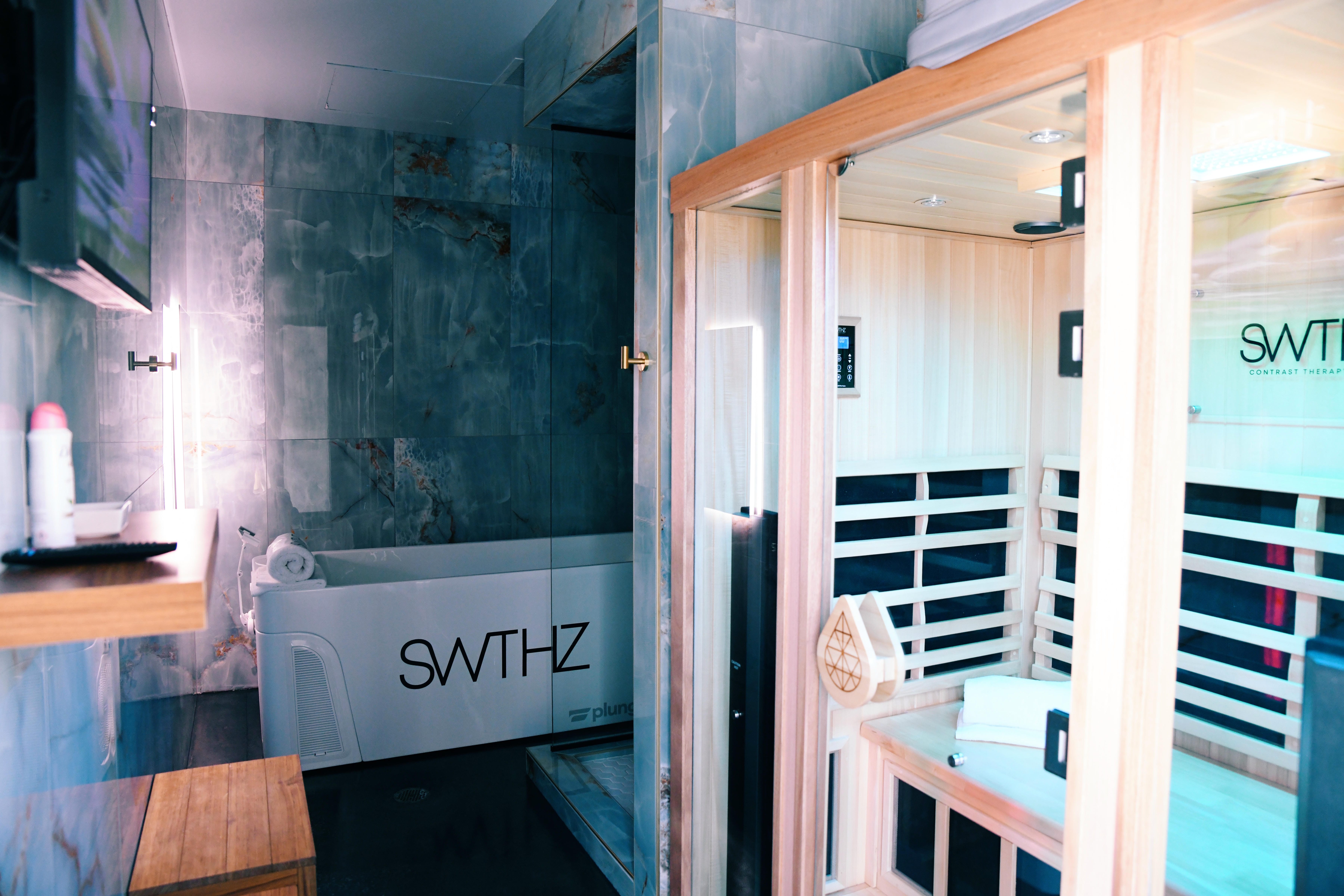 Landlord delivery scope and subsequent tenant finish buildout for a 3,177 SF high-end contrast therapy studio featuring nine suites with saunas, cold plunges and showers.